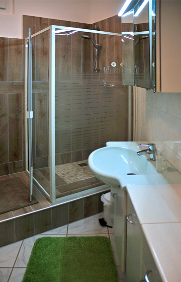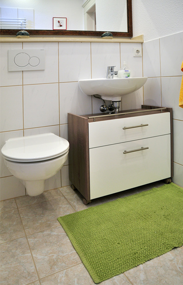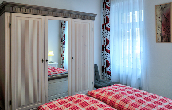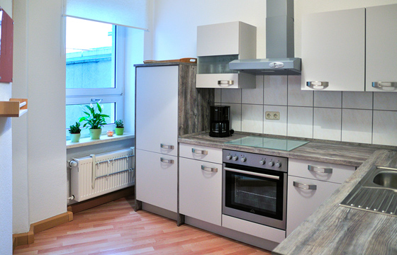 Die Ferienwohnung WohnGlück besteht aus einem Schlafzimmer mit großem Doppelbett und einem Schlafzimmer mit zwei Einzelbetten. Das großzügige Wohnzimmer mit der großen Schlafcouch und dem Esstisch bietet genug Platz für gemeinsame Mahlzeiten, zum Entspannen und Spielen. In der voll ausgestatteten Küche mit Geschirrspüler bereiten Sie sich Ihr Lieblingsgericht oder einen Kaffee für Zwischendurch zu. Die Ferienwohnung bietet ein separates WC mit Waschbecken und ein Bad mit Dusche und Waschbecken.